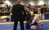 3:30 ディープハーフの展開。脇をキッチリさして、足を抜き、パスガードで5-2。そして後三角絞めに。後三角は試合ではじめてなりました。
